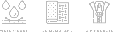 The Odyssey Activewear® Poseidon Jacket is made from our 3-layer TriDent™ fabric—an armour comprising of a water-repellent shell, bonded membrane, and protective inner backing for maximum waterproofing to weather any epic journey.